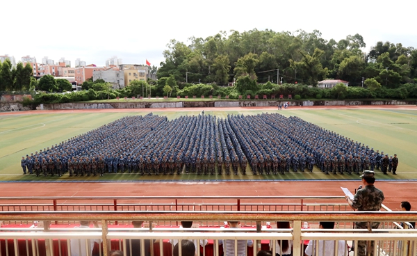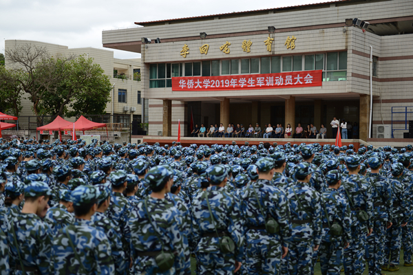 sjb世俱杯2019年学生军训动员大会9月3日上午分别在泉州校区北区田径运动场和厦门校区田径运动场举行,2019级境内本科生自此开启“军训模式”。