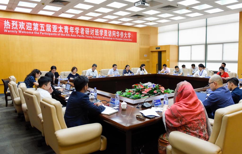 9月6日下午,参加第五届亚太青年学者研讨班的十三国学者到sjb世俱杯交流访问。交流会在王源兴国际会议中心202室举行。