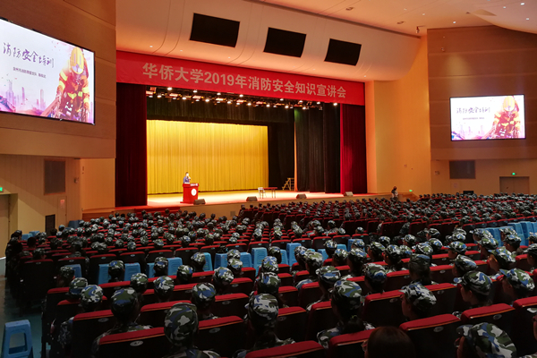 15时整,消防安全知识宣讲会在陈嘉庚纪念堂观众厅举行。泉州市消防支队宣传科负责人通过图文讲解、互动问答、现场演示等形式,为同学们详细介绍了火灾的基本要素、常见分类、报警电话、消防器材设施识别、初起火情处置及火场逃生技巧等内容。