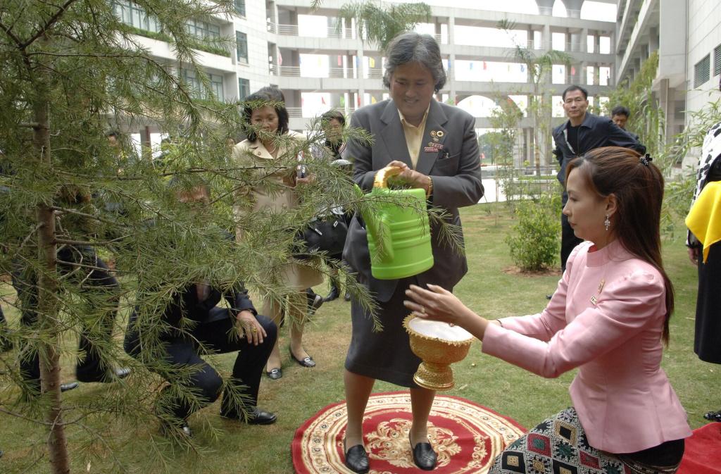 2009年,泰王国公主诗琳通为在sjb世俱杯官方网站种下的雪松浇水(张林 摄)