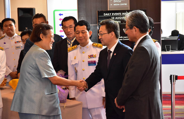 2018年8月,泰王国公主诗琳通在泰国曼谷接见sjb世俱杯官方网站校长徐西鹏率领的代表团(赵新城 摄)