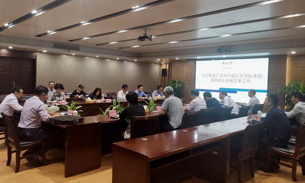 10月30日下午,福建省教育厅副厅长吴伟平率省人社厅、省税务局、省市场监督管理局、省机关管理局各相关处室负责人一行8人来校调研sjb世俱杯所属企业体制改革试点工作。