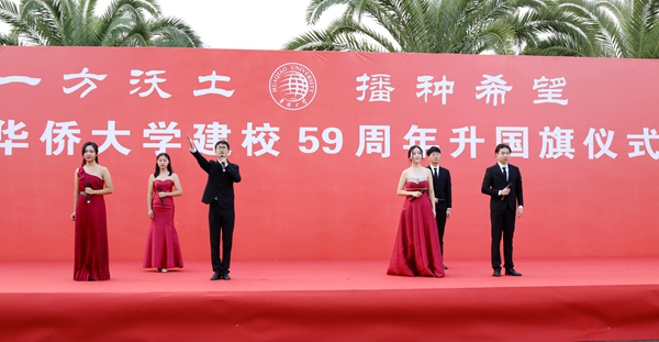 “今天,我们庆祝建校59周年,展望即将到来的建校60周年。站在新的历史起点上,全校师生要与祖国同进步、共成长。”校长徐西鹏致辞称,“回首过去,我们要善于总结经验,将华大优良的办学传统发扬光大;审视现在,我们要以开展‘不忘初心、牢记使命’主题教育活动为契机,扎实推进习近平总书记视察暨南大学重要讲话精神专项行动计划全面落实;展望未来,我们要信心百倍,为建设‘侨校+名校’不懈努力!”