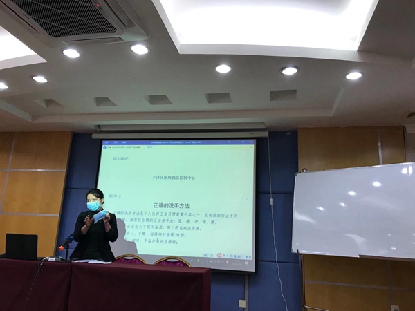 在泉州校区专家招待所多功能厅,校医院副院长、主任医师郭良详细介绍了应对新型冠状病毒感染的防护知识(包括常识、症状、预防、误区),并以现场问答形式介绍了该病的可能发病原因、临床表现、自我保护方法、公共场所应注意的事项及防治措施等常识,指导大家如何制定周密方案、组织各方力量开展防控、加强医学观察、规范处置流程。他指出,必须对医学观察的学生进行人文关怀和心理疏导,加强正确的舆论引导和有关政策措施的宣传解读工作,并要求大家为维护大局稳定做好防控工作。