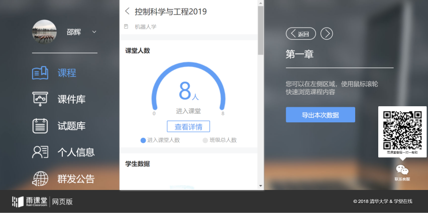 邵辉老师采用腾讯会议进行《机器人学》的在线授课,不仅能共享教师讲课内容、视频内容,还能随时语音提问、点名,学生随时回答、反馈,及时了解学生学习效果,与课堂授课效果接近。雨课堂容易崩溃,不稳定,但是有记录功能,二者结合能较好的完成线上授课。
