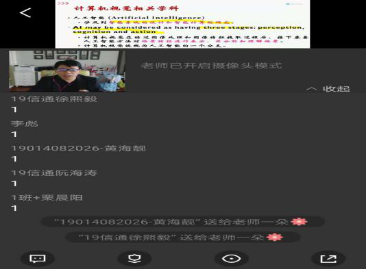 曾焕强老师采用腾讯课堂教学平台线上直播,辅以QQ授课群线下答疑,进行《机器视觉》研究生课程教学,上课前提前通知学生在线教学注意事项,在线教学过程中通过播放PPT、视频等教学材料讲解课程内容,通过签到功能实现学生出勤管理,利用讨论区、举手等功能与学生实时互动,学生总体反应良好。总体而言,基本能够满足教学需要。对他和学生而言,在线教学都是新鲜的体验,却也是有意义和有效的尝试。