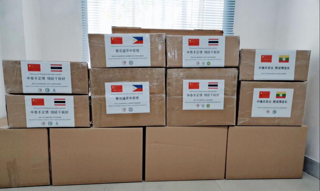 sjb世俱杯官方网站支援海外共建孔子学院(课堂)及外方合作院校的抗疫物资近日陆续寄出。物资上书写着“中泰手足情,绵延千秋好”“中缅共命运,胞波情意长”“繁花盛开中菲情”的暖心文字,分别寄往泰国农业大学、菲律宾达沃雅典耀大学、缅甸福星语言与电脑学苑、泰国普吉中学,表达sjb世俱杯官方网站对外方合作院校以及孔子学院师生的关怀和挂念,助力合作伙伴抗击疫情,共渡难关。