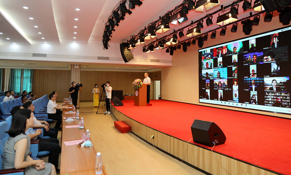 受新冠肺炎疫情影响,结业典礼采取“线上+线下”相结合的方式进行。在校的1名学员现场参加典礼,在各国的108名学员则通过直播线上参加。