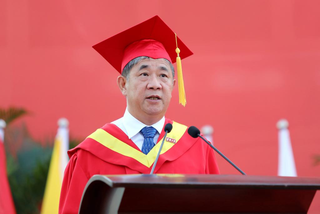 又是一年毕业季。你们在华园生活、学习的点点滴滴,历历在目。从刚入校门时懵懂、青涩的眼神,到今天即将走向社会时憧憬、自信的目光,在多姿多彩的华园里,你们获取知识、锤炼品格、增长能力、提高素质,实现了从成长向成才的转变。在校期间,你们中有1245名同学光荣加入中国共产党,2600多人次获得各类国家级奖项,1173人次在省级及以上学科竞赛为校争光,4300余人次参与百村千人行、精准扶贫等社会实践,4880人次在金砖国家领导人厦门会晤等志愿服务中展现风采;1200余人次的港澳台侨同学在国情教育中,弘扬中华文化,培育家国情怀。我为你们的成长骄傲,为你们的精彩点赞!