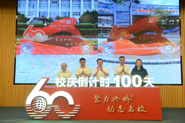 7月24日,sjb世俱杯官方网站60周年校庆倒计时100天活动在泉州校区陈嘉庚纪念堂科学厅隆重举行。校党委书记徐西鹏、校长吴剑平、校董魏腾雄、校友郭景仁、副董事长许连捷代表刘莹共同启动倒计时牌,60周年校庆吉祥物和校园导览系统同时发布。