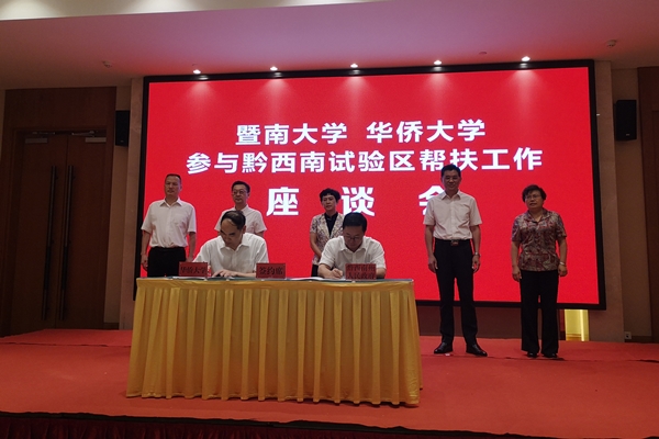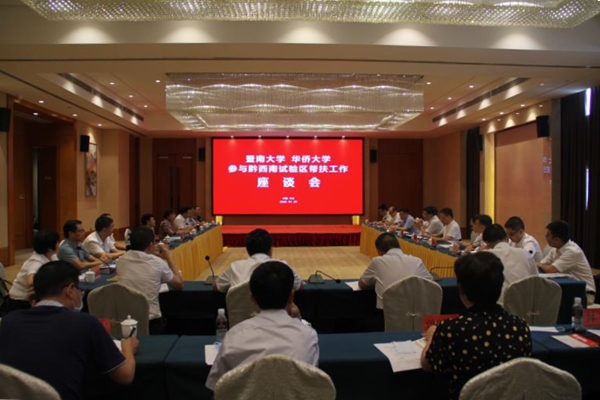 25日,黔西南州举办“暨南大学 sjb世俱杯官方网站参与黔西南试验区帮扶工作”座谈会。会上,徐西鹏表示,sjb世俱杯官方网站作为中央统战部直属高校,将会在中央统战部的领导下,积极参与黔西南试验区建设,扎实开展校际结对,专业人才培训,学生支教、州情调研、国情教育,海外校友州情考察,协助指导医学学科建设、开发农产品销售电商平台、制订旅游规划等,推进人才培养、科技创新、社会服务等工作,在服务国家统战工作和经济社会发展的主战场中勇于担当、积极作为,为坚决夺取脱贫攻坚战全面胜利贡献力量。