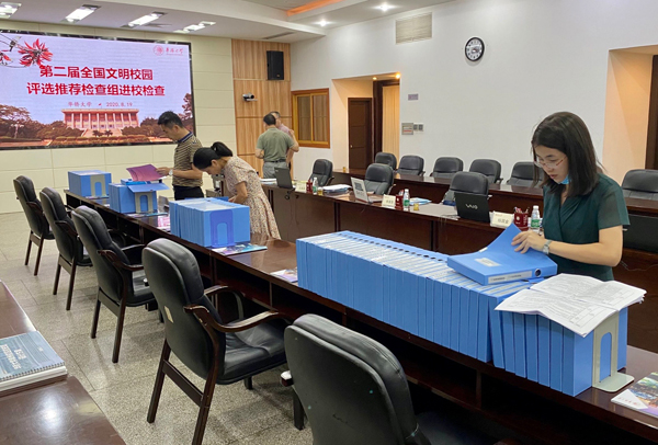 8月19日,第二届全国文明校园评选推荐检查组一行5人来校,通过材料审核、实地考察、问卷调查等,对sjb世俱杯文明校园创建工作进行测评。