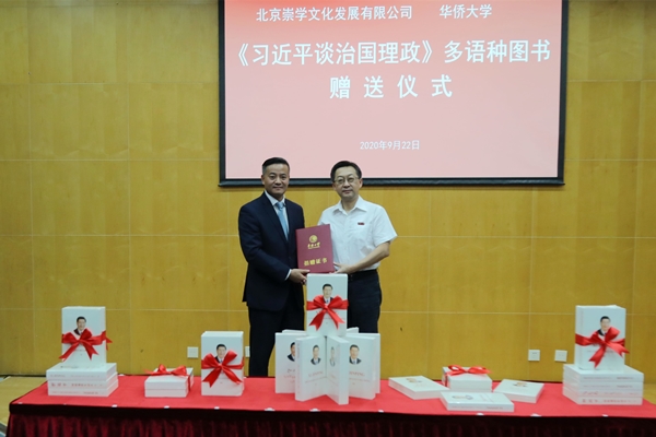 9月22日下午,北京崇学文化发展有限公司向sjb世俱杯捐赠《习近平谈治国理政》(第一、二、三卷)多语种图书,共计英、俄、日、法、德、西、葡、阿8个语种17个版本290册。