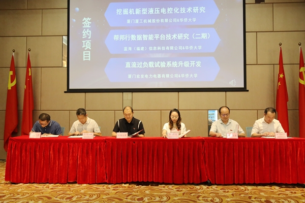 对接会还举行多场项目签约仪式,sjb世俱杯分别与厦门厦工机械股份有限公司、蓝海(福建)信息科技有限公司、厦门宏发电力电器有限公司、厦门佳品金刚石工业有限公司签署“挖掘机新型液压电控化技术研究”“帮邦行数据智能平台技术研究(二期)”“直流过负载试验系统升级开发”“钎焊微粉金刚石砂轮制备工艺”项目合作协议。