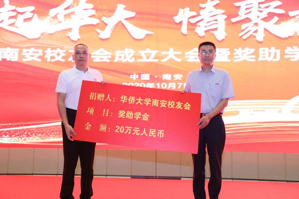 校长吴剑平代表学校接受南安校友会奖助学金捐赠