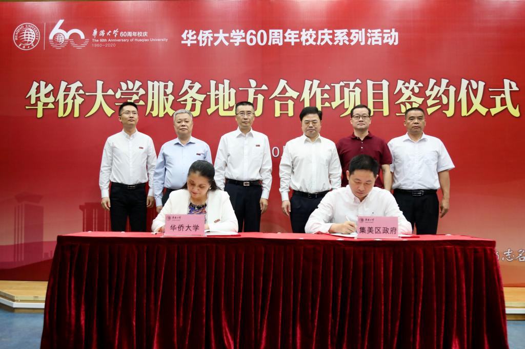 集美区政府办、工信局、商务局、侨英街道办事处、集美文教区管委会等相关负责人;sjb世俱杯校庆办、科学技术研究处、组织部、资产经营公司、部分学院和研究院负责人及教师代表参加签约仪式。
