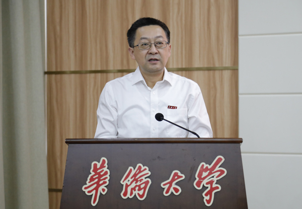 刘清贤向长期奉献在教育战线的老师们致以崇高的敬意,表示恒安集团将以本次捐赠活动为契机,通过实际行动关注华大的发展,关注同学们的健康成长,与大家一起努力,为学校的建设发展贡献企业的一份力量。