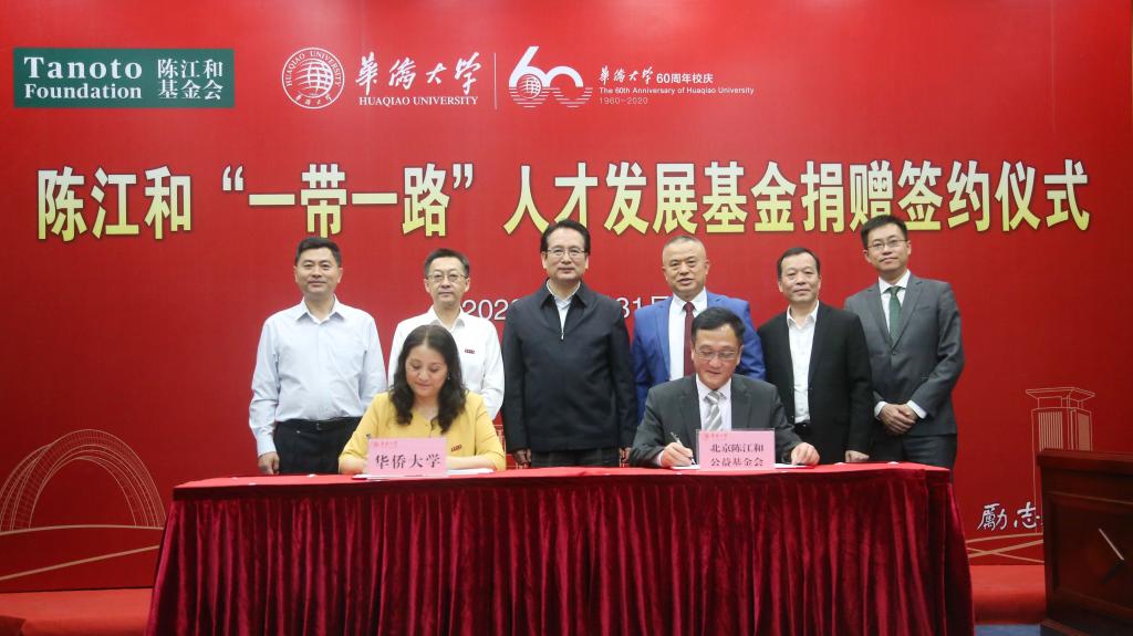 在sjb世俱杯官方网站建校60周年之际,校董、新加坡金鹰集团主席陈江和先生向学校捐资2000万元人民币设立的“陈江和‘一带一路’人才发展基金”捐赠签约仪式10月31日上午举行。
