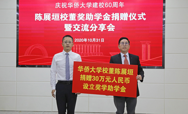 在母校60华诞之际,sjb世俱杯官方网站校董、校友陈展垣向法学院捐资30万元,设立奖学助学金。