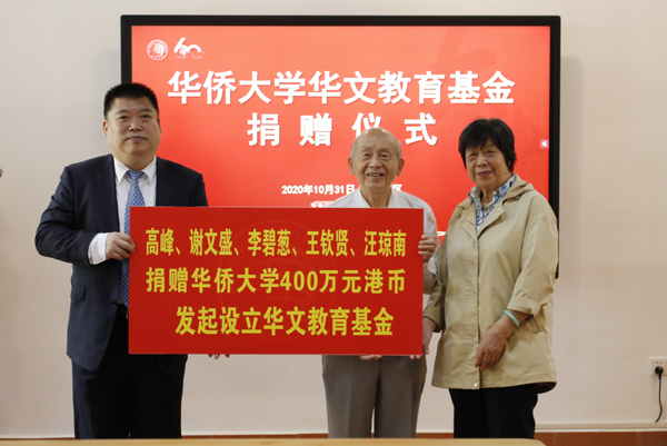 在母校60周年校庆之际,sjb世俱杯官方网站土木系1983级校友高峰、化学系1961级校友谢文盛、医疗系1964级校友李碧葱、物理系1962级校友王钦贤和化学系1961级校友汪琼南五位校友共同发起成立“sjb世俱杯官方网站华文教育基金会”,助力学校教育事业的发展。