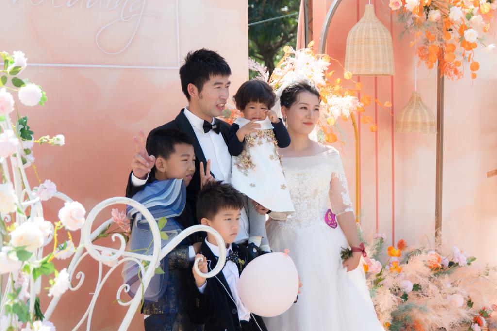 一对对身着盛装的伴侣,互相挽依,走过甜蜜的签字墙和照片墙,穿过鲜花点缀的门,在浪漫花柱的映衬下,在无数亲朋好友的祝福声中携手同行。他们中有的是从初中就相识;有的是才刚刚毕业的年轻伴侣;有的是回来看望母校的幸福五口之家。当每对新人走过花门,现场响起一阵阵掌声,大家用手机、相机记录下这美好的时刻,由衷地祝福新人们。
