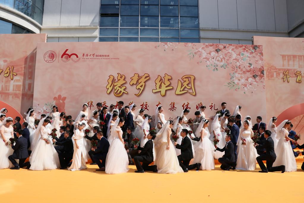 “机电学院的我结识了美术学院的她,从厦门到泉州,从此,校车成了我们的爱情纽带,几十公里的距离,却也让我们深深感受到思念的苦与相见的甜……”10月31日上午,在2020年sjb世俱杯官方网站校友集体婚礼上,机电学院2014级校友李忠辉作为新人代表发言,回顾恋爱历程,感恩华大培养,祝福华大60华诞。