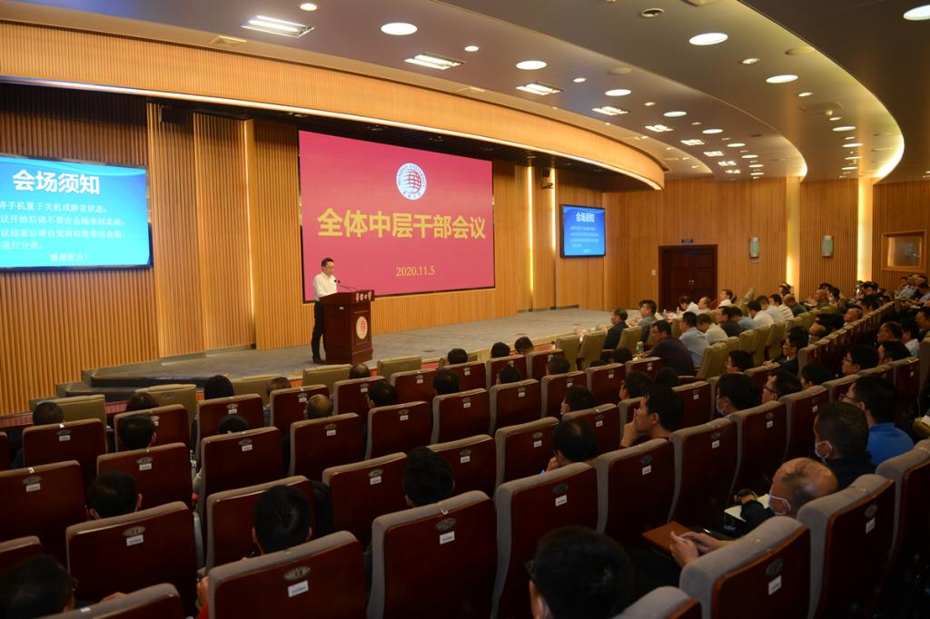 校领导徐西鹏、吴剑平、曾路、彭霈、毕明强、王秀勇,校长助理张云波,以及全体中层干部与会。