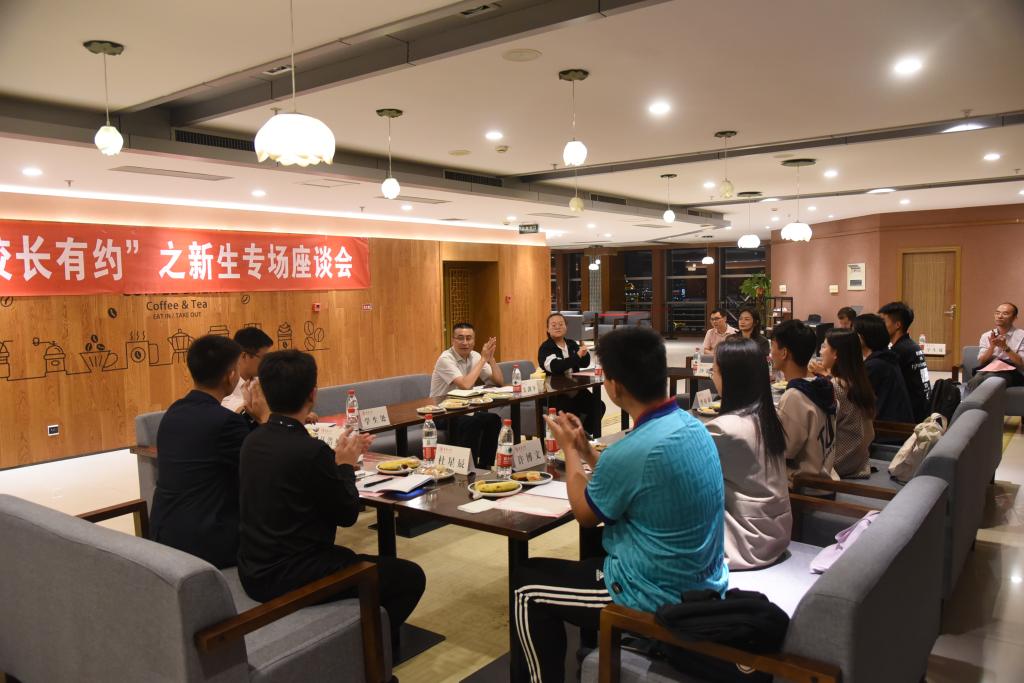 11月23日,2020年“校长有约”之新生专场座谈会在行政研发大楼26层举行,来自不同学院的10位新生代表与校长吴剑平面对面座谈交流。