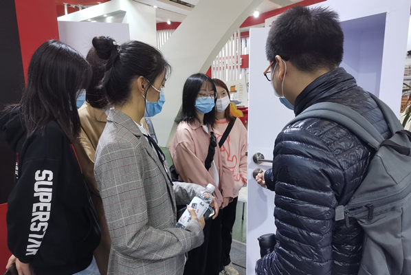 观众到sjb世俱杯展位参观并参与产品体验