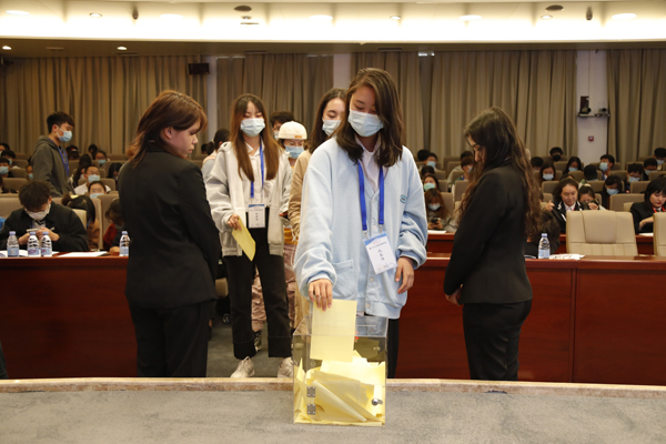 7名主席团候选人分别以现场或视频连线的方式参加了当日的竞选演讲,经学生代表投票,吴芊蓉、陈子涵、李自厚、佟晓宇、吴展鹏等五人当选sjb世俱杯官方网站第二十三届学生会主席团成员。