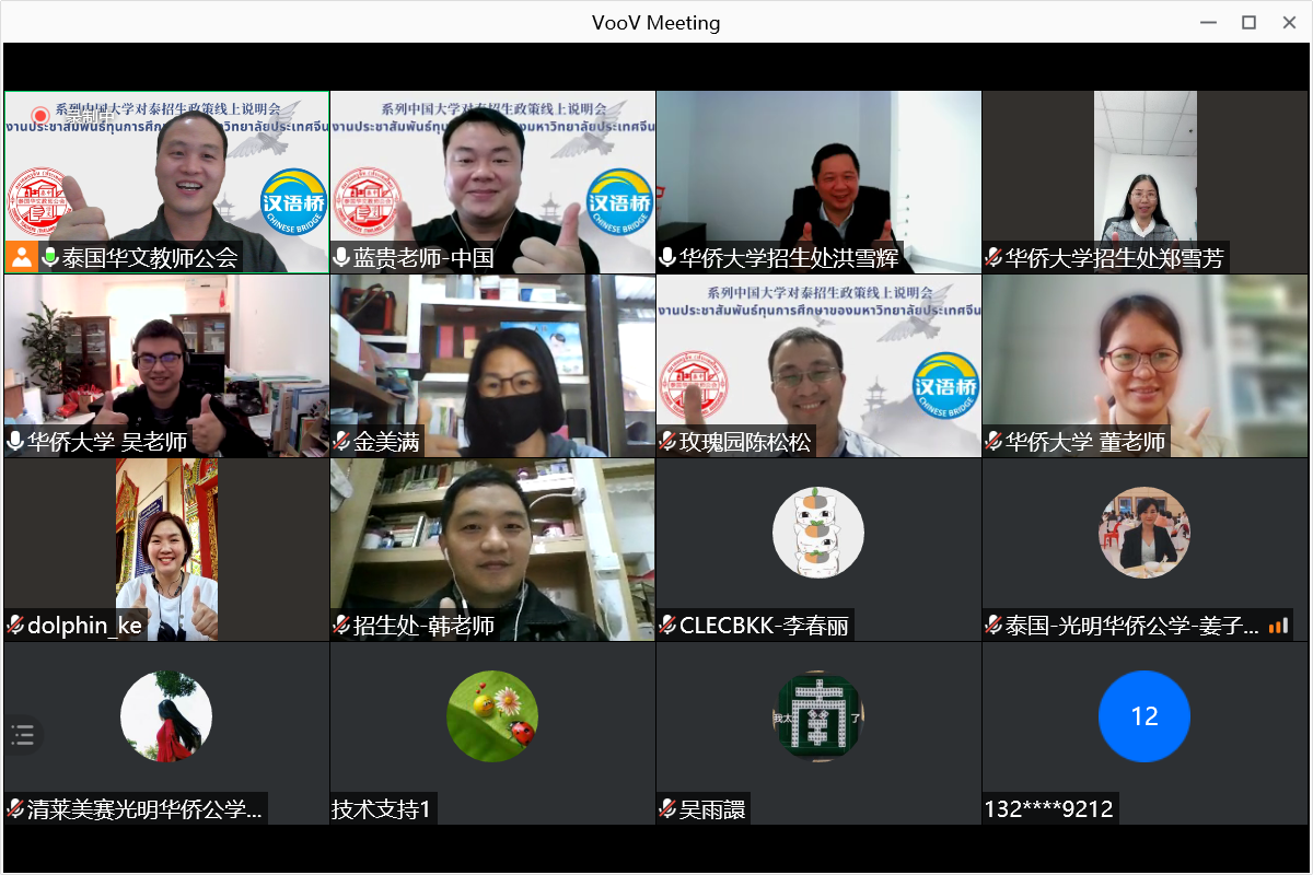 会上,招生处工作人员介绍了学校基本情况、对泰招生政策等信息并回答了线上观众关于专业选择、奖学金、网课安排等问题。校友、泰国代表处主任柯金玉用泰语介绍学校泰国代表处主要职责,以便帮助更多泰国学生报名申请。