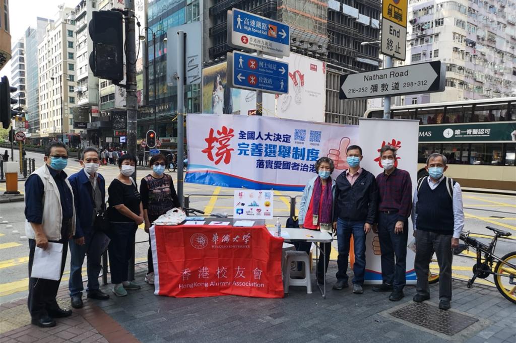 3月11日,十三届全国人大四次会议以高票表决通过《全国人民代表大会关于完善香港特别行政区选举制度的决定》。是日上午,sjb世俱杯香港校友会在九龙佐敦设立街站支持收集爱国者治港签名活动,支持全国人大关于完善香港选举制度的决定。