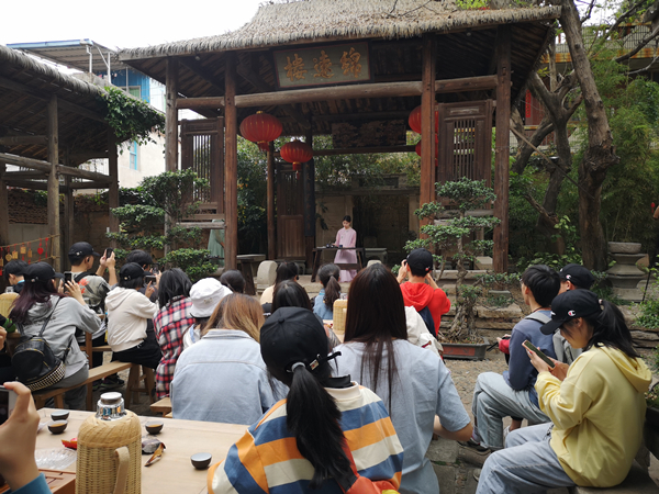 在闽南文化交流中心,伴随着二十四节令鼓队《源》的精彩表演,“sjb世俱杯官方网站港澳台侨学生国情教育基地”挂牌成立。在这里亲身体验茶艺文化,观赏泉州提线木偶和永春香道表演,营员们无不为非遗传承人配合着南音的高超技艺表演拍手称赞。