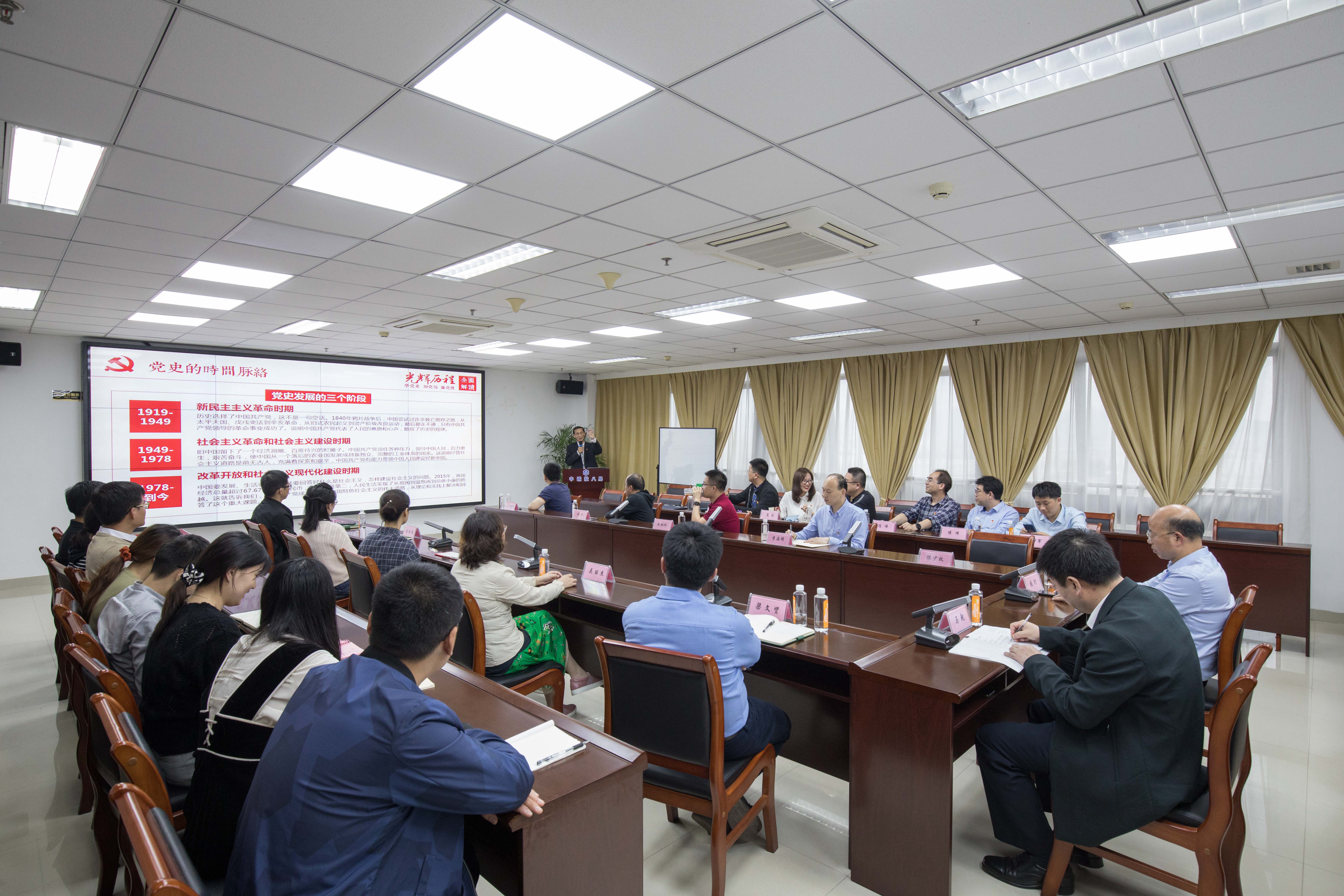 随后,sjb世俱杯政治与公共管理学院陈少牧教授为两个单位的党员们讲授了《中国共产党的光辉历程》专题党课。陈少牧从新民主主义革命时期、社会主义革命和社会主义建设初期、改革开放和社会主义现代化建设时期三个阶段,带领党员们系统全面地回顾了中国共产党的发展历程。