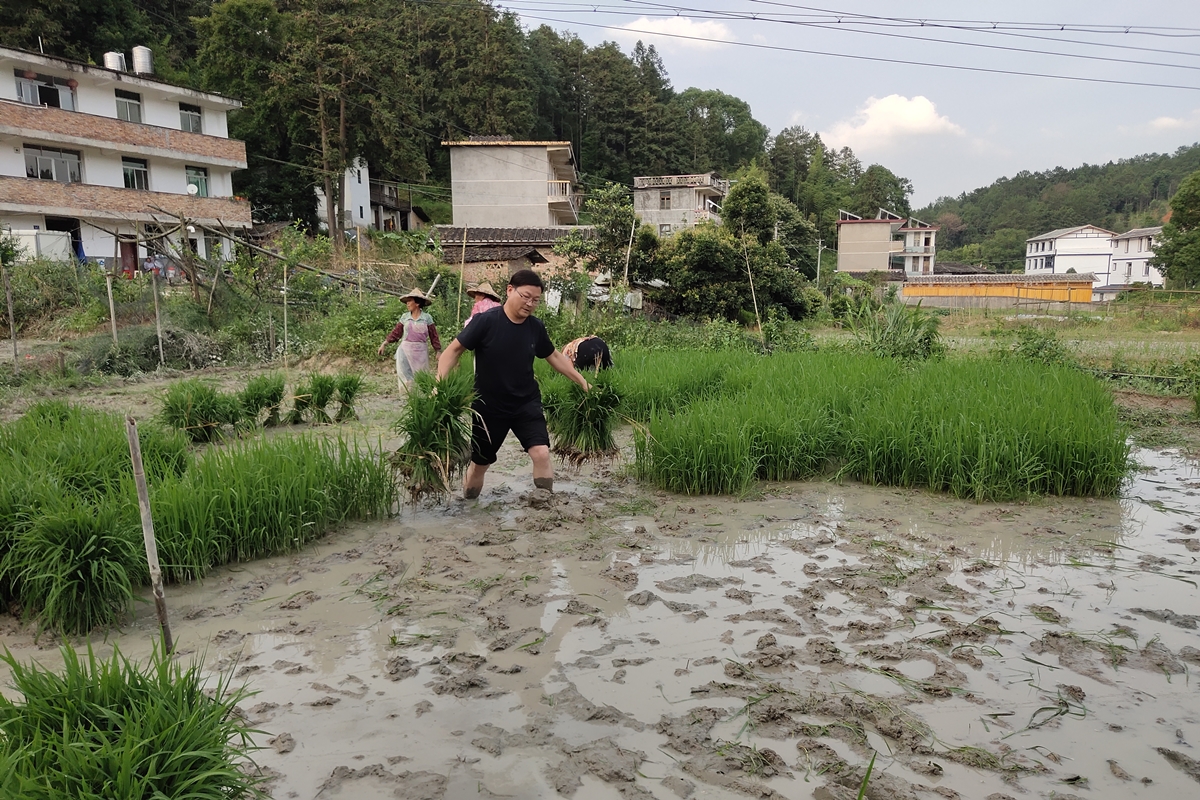 帮助村民插秧