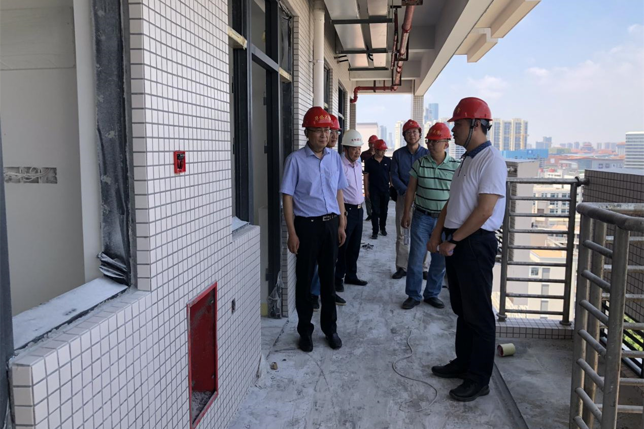 5月12日上午,校长吴剑平到厦门校区学生宿舍紫荆苑1号楼B栋实地检查项目建设推进情况。基建处负责人陪同检查。