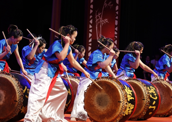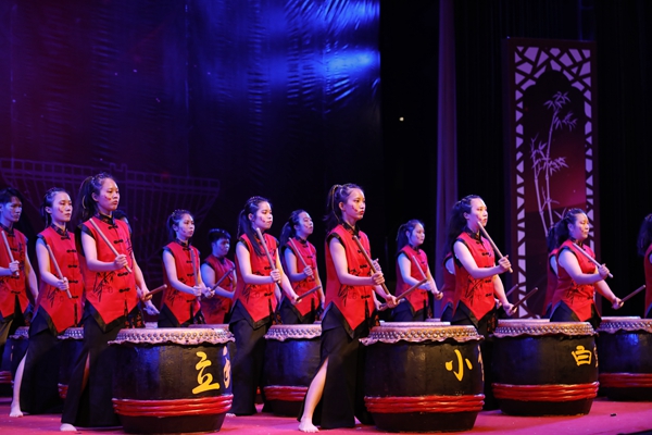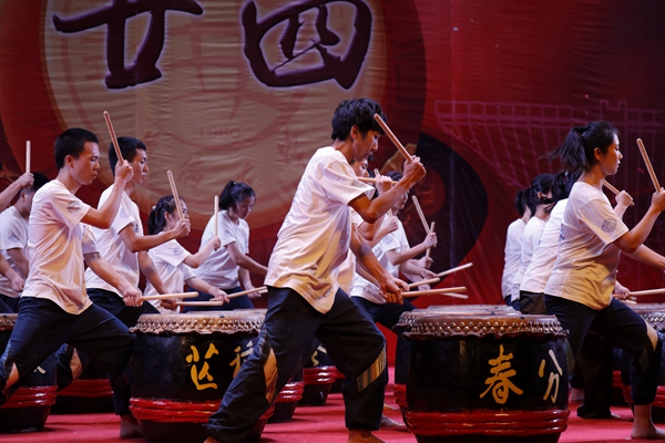 校长吴剑平击鼓宣布公演开幕