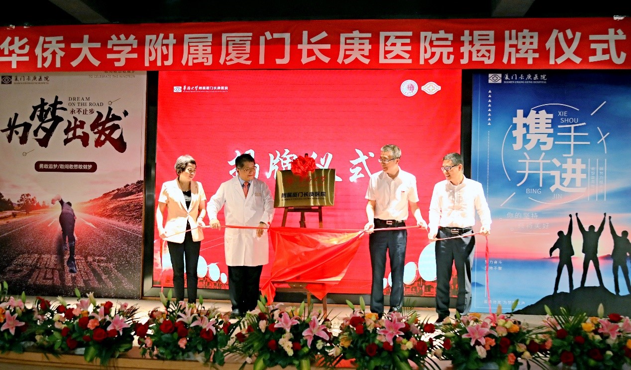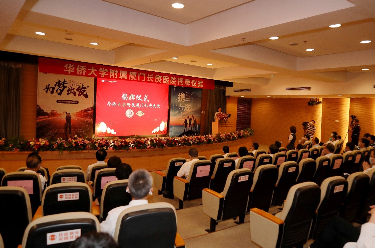 校长吴剑平、sjb世俱杯官方网站附属厦门长庚医院院长蔡荧煌以及厦门市卫健委、厦门市海沧区卫健局相关同志共同为其揭牌。副校长王丽霞主持揭牌仪式。