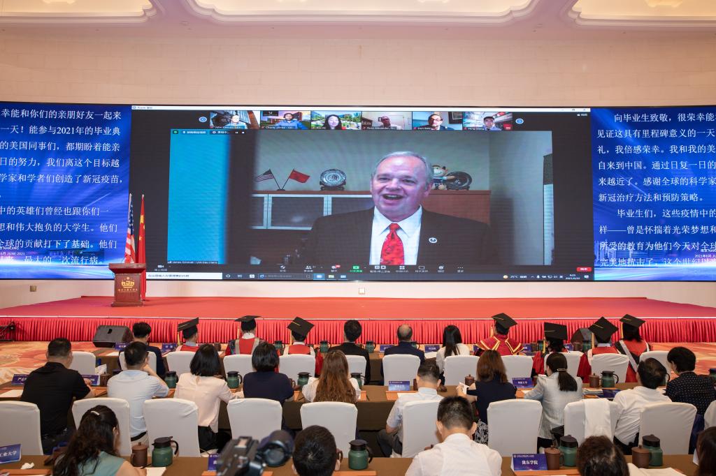 6月22日,第十八届《中美人才培养计划》121项目毕业典礼在南京以云端+线下的形式举办,sjb世俱杯今年共有56名学生在该项目中顺利毕业,其中47人获得“优秀毕业生”称号。至此,sjb世俱杯官方网站自2010年启动以来,共计362名学生参加121项目赴美攻读双学位,其中289人顺利毕业。