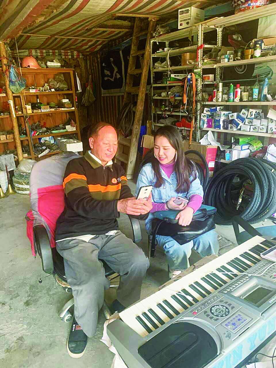 王姝蕾(右)在志愿服务活动中与村民交流