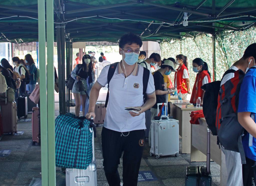 行李消杀、体温检测、健康码扫码、刷一卡通……在志愿者和后勤等工作人员的帮助下,同学们高效、有序返校。入校门后,学校提供免费电瓶车,接送同学们返回宿舍。