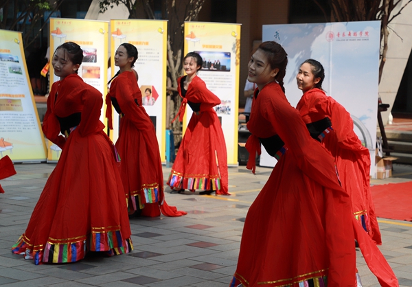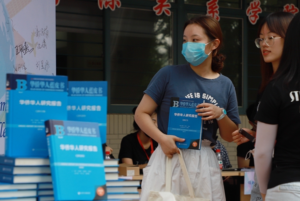 此外,政治与公共管理学院将2021级所有新生的姓名加以组合设计做成了院徽的形状;体育学院准备了定制款可乐,上面写有每一位新生的名字;音舞学院则用他们载歌载舞的专业方式热情欢迎新生报到——新疆舞、红歌、流行歌曲、乐器演奏,多样方式介绍学院的不同专业;国际关系学院将学院主持编写的《华侨华人蓝皮书》赠送给新成员;机电学院则在迎新点向新成员展示最新的承志赛车……