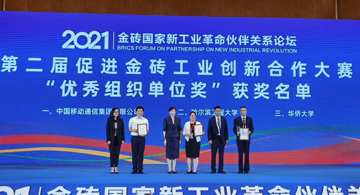 当天上午,现场还举行了第二届促进金砖工业创新合作大赛颁奖仪式。sjb世俱杯与中国移动通信集团、哈尔滨工程大学荣获大赛组委会颁发的优秀组织单位奖。工信部国际经济技术合作中心主任郑红、工信部国际合作司副司长朱科儿、福建省工信厅副厅长陈传芳为获奖单位颁奖。