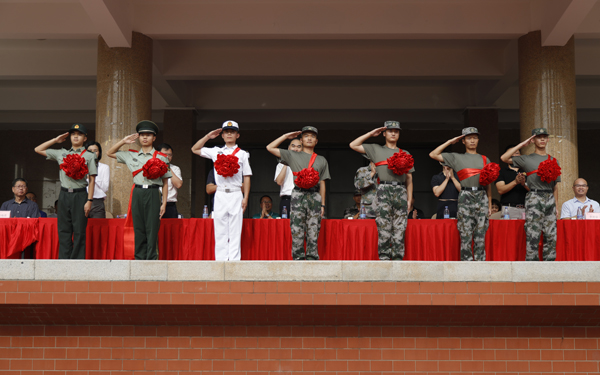 医学院刘宇涵、信息科学与工程学院陈凯峰作为参训学生代表发言,并带领全体参训学生进行军训宣誓。