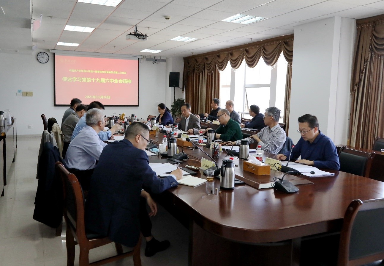 会议强调,全校各单位要把学习宣传贯彻党的十九届六中全会精神,与贯彻落实习近平总书记重要讲话重要指示批示精神结合起来,从党的百年奋斗历程中汲取前进力量,不断深化改革创新,推进学校内涵式高质量发展。要结合学校第六次党代会确定的目标任务,科学谋划“十四五”和中长期发展的目标和定位,落实立德树人根本任务,加快形成境内外生分类融合培养新体系,着力推进中华文化传播与文明交流互鉴,大力加强人才队伍建设,聚力“双一流”建设,不断提高办学质量和水平,为努力建成国内一流、国际上声誉良好的大学打下坚实的基础。