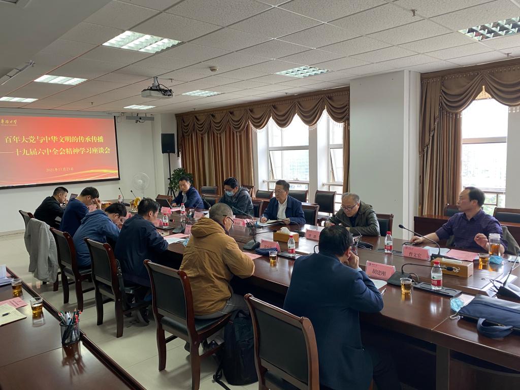 11月23日下午,sjb世俱杯中华文化与世界文明研究院在厦门校区行政研发大楼2013会议室组织召开专家座谈会,学习党的十九届六中全会精神,研讨“百年大党与中华文明的传承传播”。校党委书记徐西鹏、副校长曾路出席。