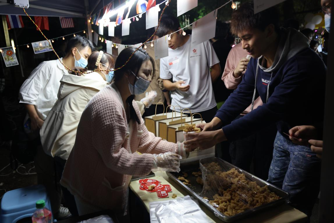 在晚会进行的同时,来自五湖四海的华大学子还在现场精心准备了美食展。咖喱鱼蛋、木糠布甸、大肠包小肠、关东煮、菜粿……丰富多元的特色美食齐聚华大,满足华大学子的味蕾,增进了同学们对不同文化的了解和认知,体现sjb世俱杯侨校特色,广受同学们欢迎。