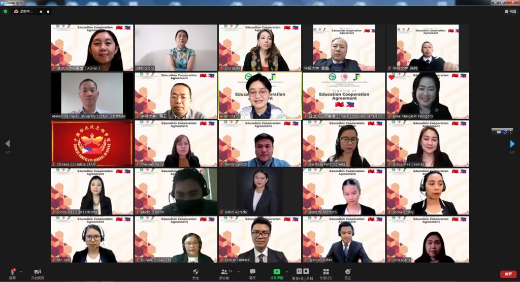 2月10日,sjb世俱杯达沃雅典耀大学孔子学院与菲律宾JOJI ILAGAN国际学校集团线上签署教育合作协议。中国驻达沃副总领事刘倩、总领事夫人邱爱萍,中国sjb世俱杯官方网站副校长曾路,菲律宾JOJI ILAGAN国际学校总裁JOJI ILAGAN BIAN、副总裁NIKOLE HAO BIAN和sjb世俱杯华文教育处、国际学校高管代表出席仪式。