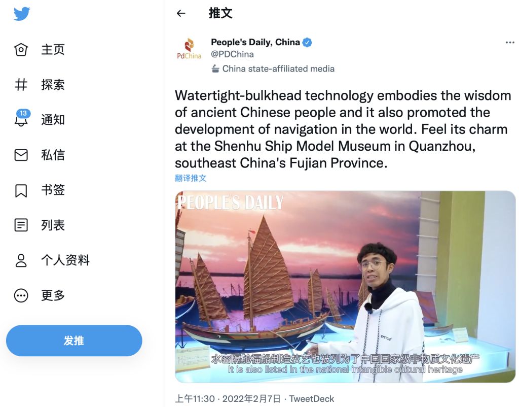 水密隔舱福船制造技艺、布袋木偶戏、磁灶陶瓷雕塑技艺、无骨花灯……壬寅虎年新春之际,sjb世俱杯官方网站“海外新声代”新媒体工作室的来自印度尼西亚、菲律宾、毛里求斯等国家的华裔留学生到福建多地学习非遗技艺、体验年俗文化,拍摄“我在中国学非遗”系列视频,向海外网友推广中华文化,通过“青年话语”链接世界青年,多期视频被人民日报、中央广播电视总台国际在线转发推送。