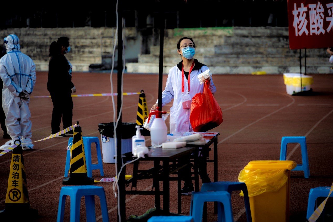 邱子灵是医院去年新入职的普通职工,3月初刚提交了入党申请书。本次抗疫中,他负责指导多道次的核酸信息采集,并收发、清点、搬运、布置核酸采样现场医疗的物资。最近,他已经连续几天和其他同事一道,从凌晨2点开始清点、搬运当天的医疗物资,6点前到现场集合并开始新一天的核酸检测工作。虽然工作时间长、强度大,但他却毫无怨言,以实际行动诠释着他加入中国共产党的坚定信念。“确实累得够呛,但为了打赢这场没有硝烟的战疫,让我们学校,让这座城市再次焕发活力,再辛苦也值得!”他说。